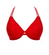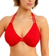 こちらのワイヤー入りホルタービキニは、大胆に開いた深めのVネックラインが、デコルテを美しく引き立てます。カップ内側にはパワーネットを使用し、ほどよいシェイプ力と安定したサポートを実現。