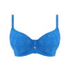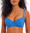 こちらのワイヤー入りパッドビキニは、軽めのフォームパッド入りカップが、心地よいサポート力と丸みのある美しいラインをつくり出します。スウィートハート型のネックラインは、胸元を引き上げ、自然なボリューム感とデコルテの魅力をより一層引き立てます。