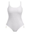 背面にはキーホールカットアウトを配し、バッククラスプで着脱もスムーズ。レッグラインはすくい上げるように美しくカットされ、自然で上品なカバレッジを実現します。サイドシームはギャザー仕様で、シルエットの微調整が可能です。