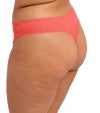 背面はセクシーなシアー仕様のTバックソング。フロントには控えめな見え方を叶えるコットンライニング(裏地つき)を施しています。また、フロントには刺繍をあしらったシアーパネルを配し、華やかなアクセントを加えています。
