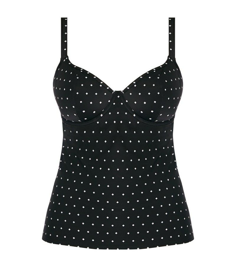 控えめなラグジュアリーが、夏の装いを一段と引き立てる。Jewel Coveのプランジタンキニトップは、モダンなダイヤモンドプリントが知的な遊び心を添え、