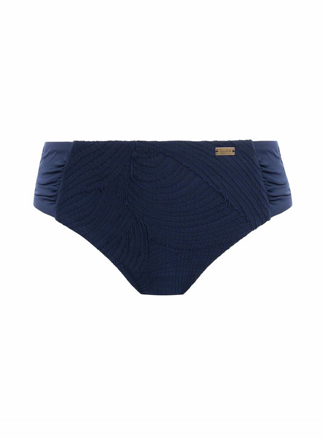 サイドギャザー入り・ミディアムカバレージのビキニブリーフ。