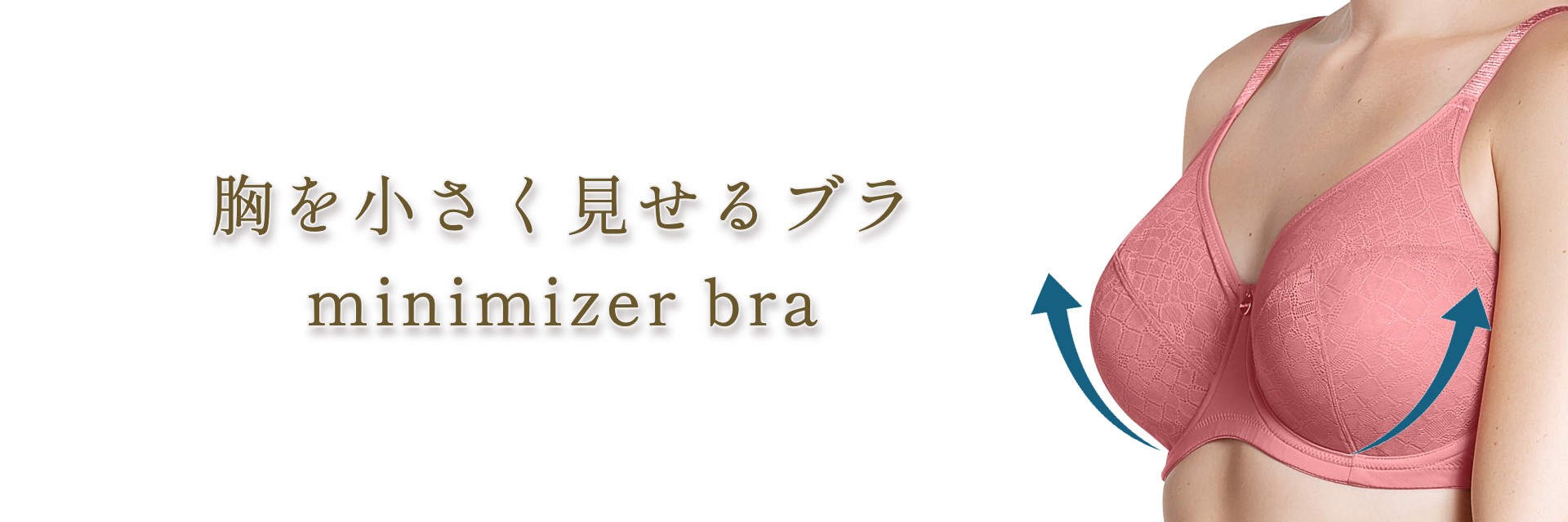 ここから、当店でお取り扱いの2タイプのブラをご紹介しながら、大人の女性にぴったりの選び方のポイントをお届けします。どちらも約1カップ分小さく見せてくれる効果のあるアイテムです。