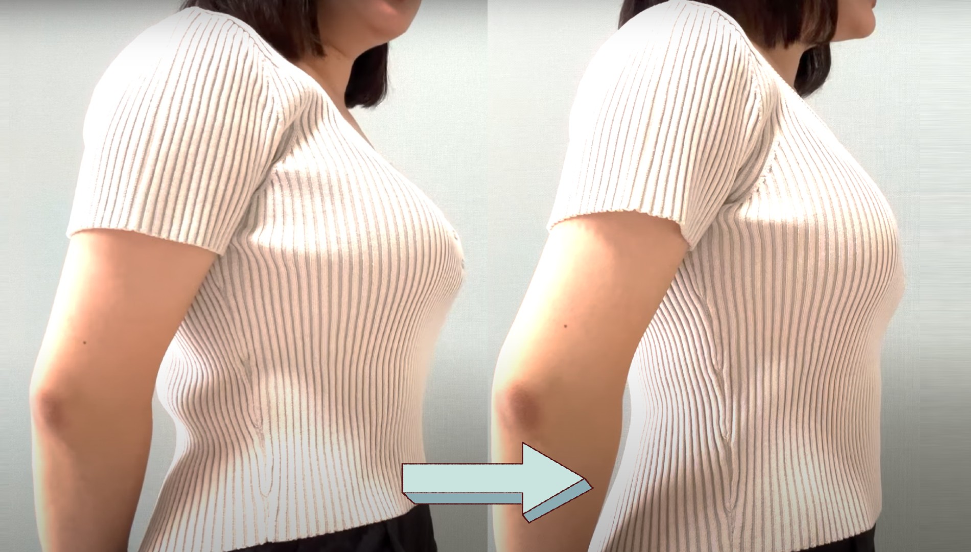 「胸を小さく見せるブラ」の魅力は、実際に装いに取り入れることで初めて実感できるもの。バストを自然に整えることで、服の見え方や着心地がどう変わるのか——ここでは、当店の【Pearl (パール)】ブラを使ったビフォーアフターの実例をご紹介します。大人の女性らしい洗練されたスタイルが、さりげなく引き立つ瞬間をぜひイメージしてみてください。